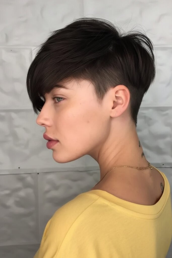 It’s a fearless combo of closely shaved sides or nape with a chic pixie on top—giving you serious attitude and freedom all in one cut.