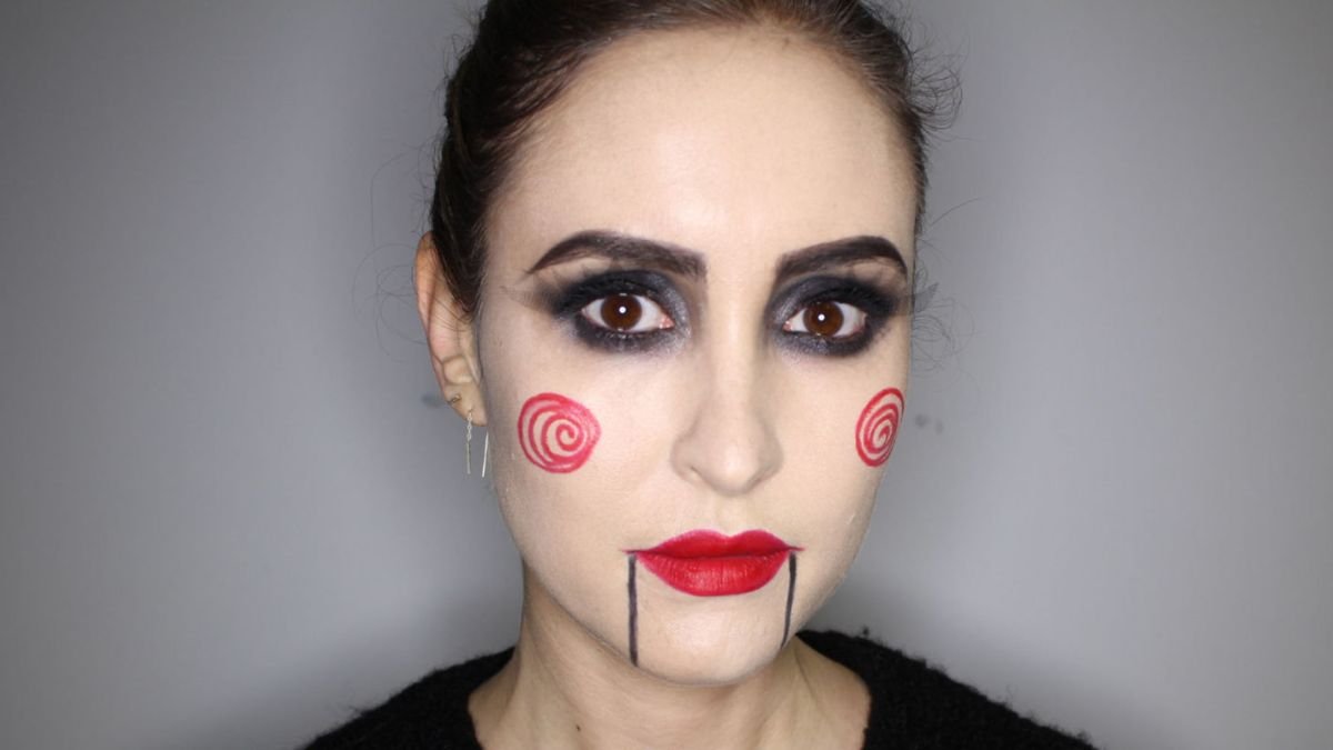 For a complete look, style your hair in messy pigtails or sleek waves and finish with a red lip. This whimsical yet spooky style brings a playful, chaotic energy to your Halloween makeup.