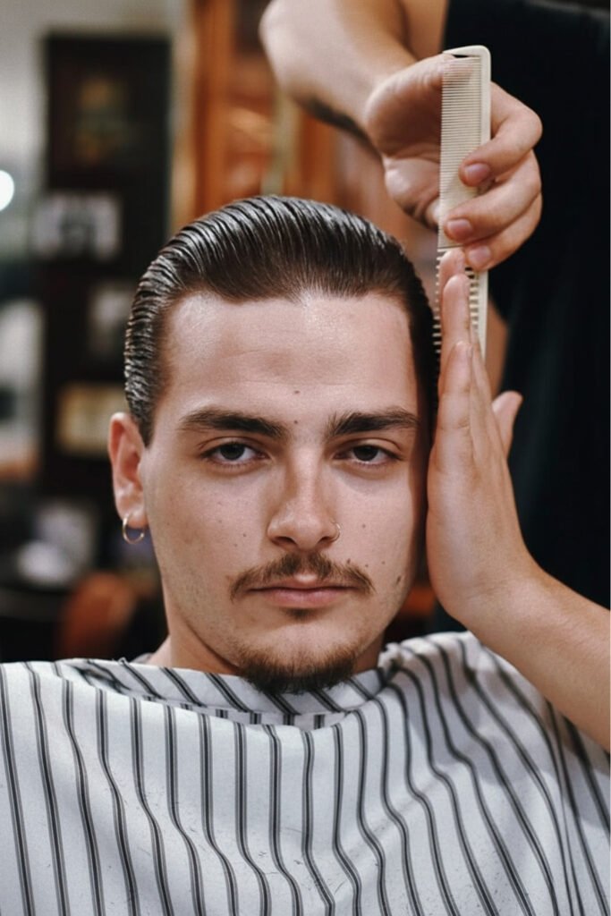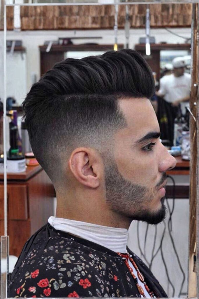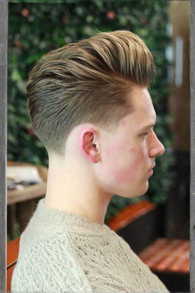 The pompadour combines volume and elegance, achieved by blow-drying hair upward and back with a strong-hold pomade. It’s a sharp, eye-catching men’s haircut for graduation day that photographs well and fits under caps if styled with enough control.
