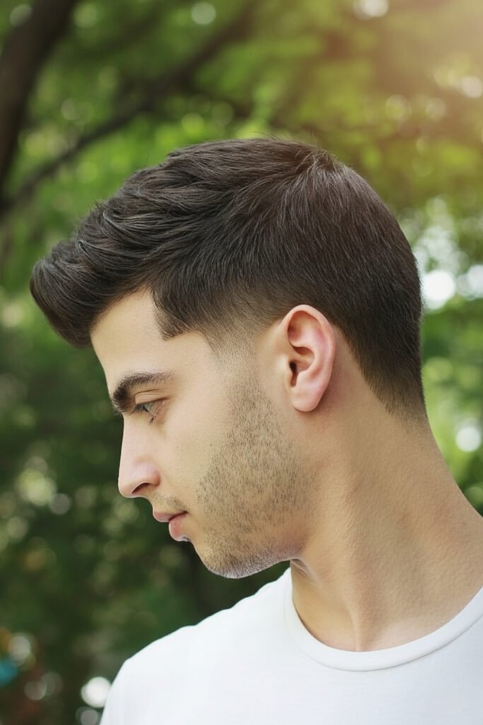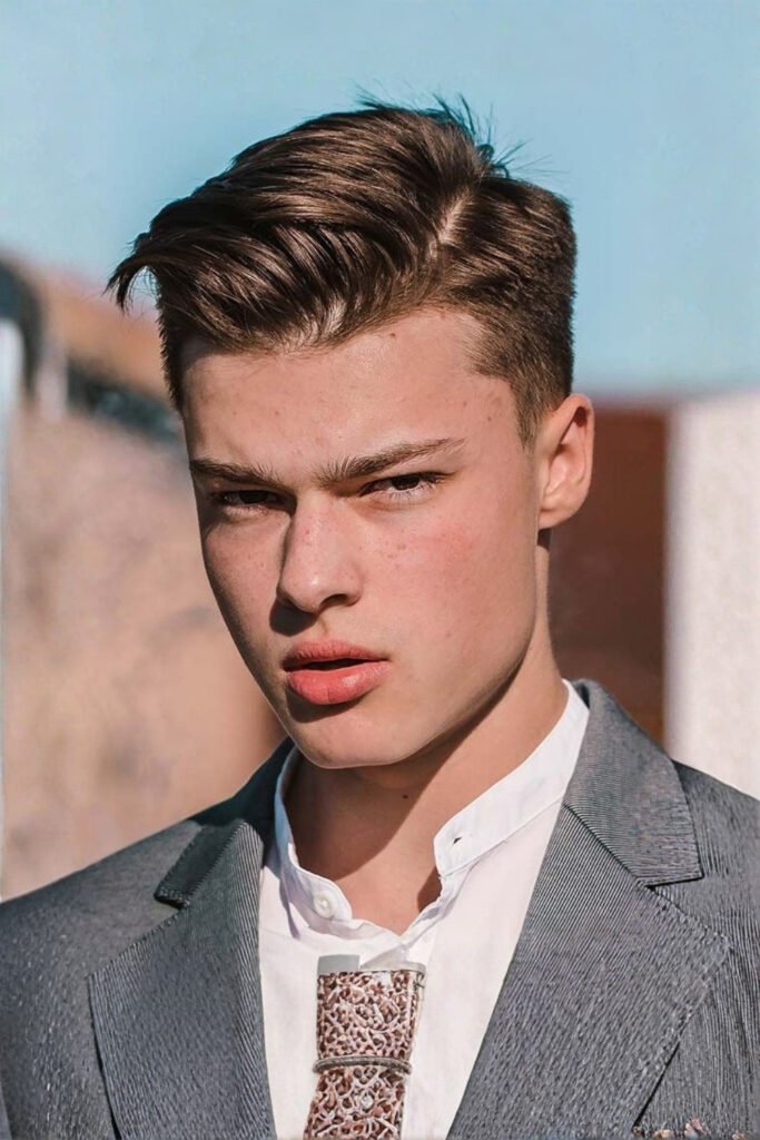 This versatile haircut is tapered neatly on the sides with slightly longer hair on top, styled with light pomade or gel. It’s one of the best haircuts for graduation for male students wanting a formal yet relaxed style that photographs well.