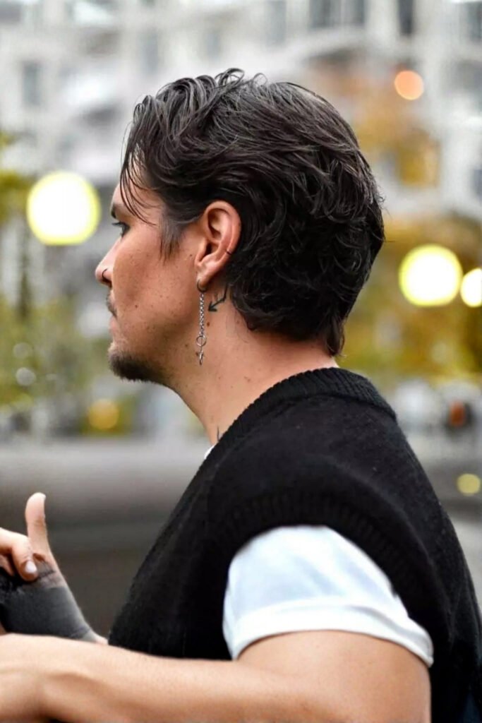 This men’s hair clay style works well with button-downs or smart casual outfits and fits dates, social events, and casual office settings.