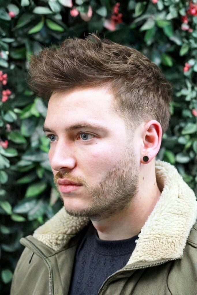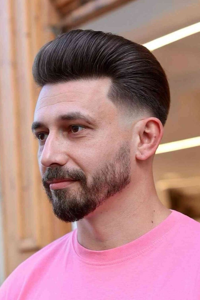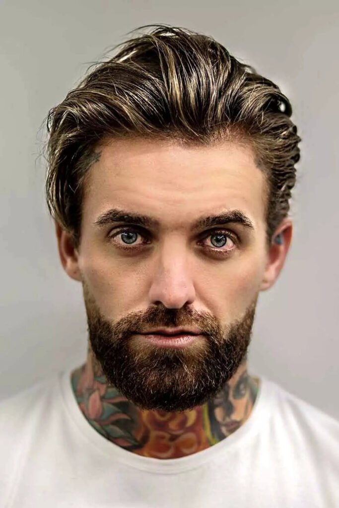 Low shine hair products keep the style controlled without looking stiff. This natural hold hairstyle suits men who want flexibility throughout the day. Pair it with a faded beard and a fitted shirt or light jacket. It works well for workdays, meetings, and relaxed evenings out.