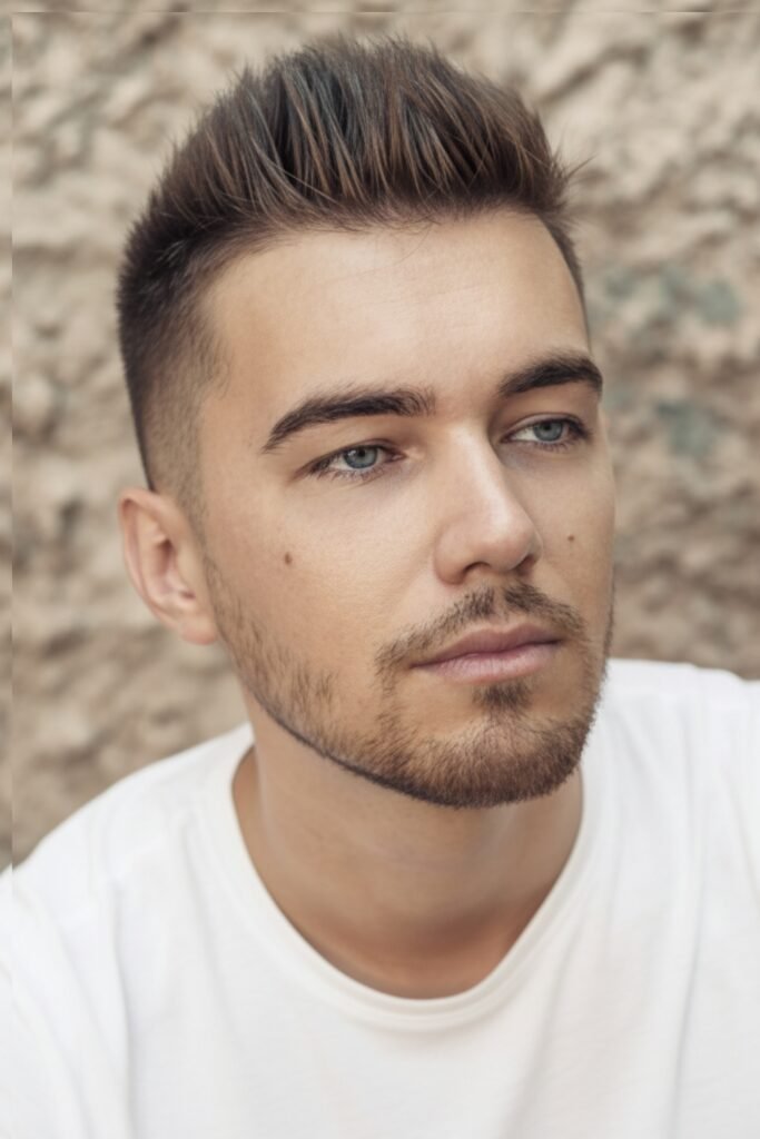 With the short mohawk and fade, you get a striking, clean-cut style that’s easy to maintain. The height of the mohawk is emphasized by the sharp fade on the sides.