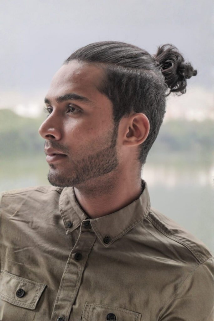 This undercut high ponytail for men with short hair screams modern samurai hair swagger—clean yet fierce. Perfect for guys with oval or square faces and straight or wavy hair. Style with matte clay and strong elastics.