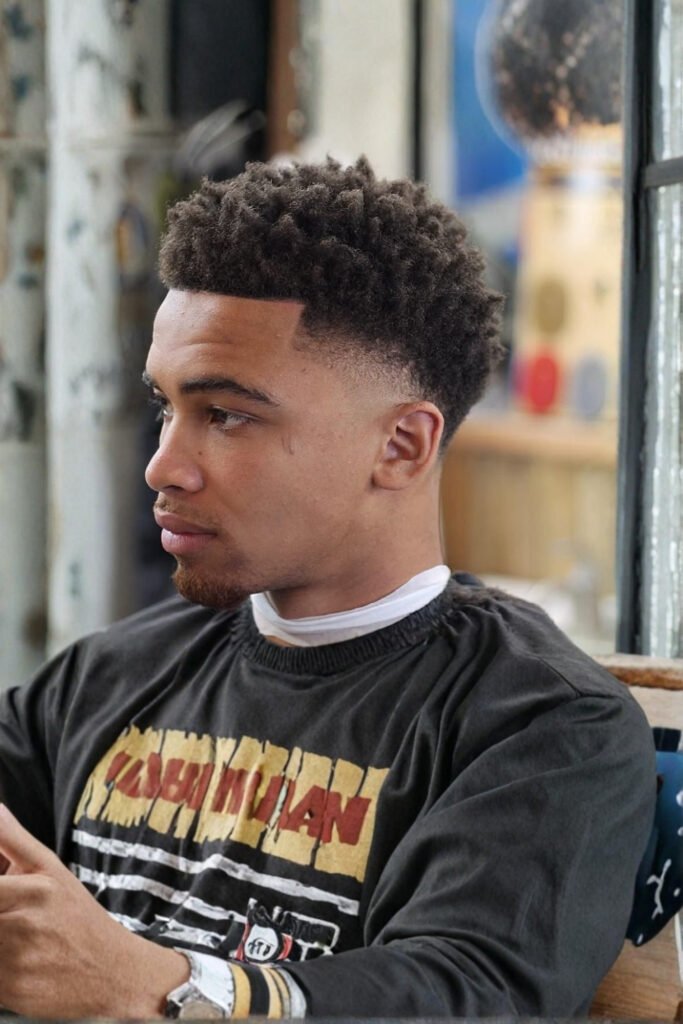 Looks fire with fitted tees or streetwear joggers. Subtle blonde highlights or copper lowlights give your curls dimension. Think J. Cole with TikTok edge—natural, masculine, and always trending in modern fade haircut culture.