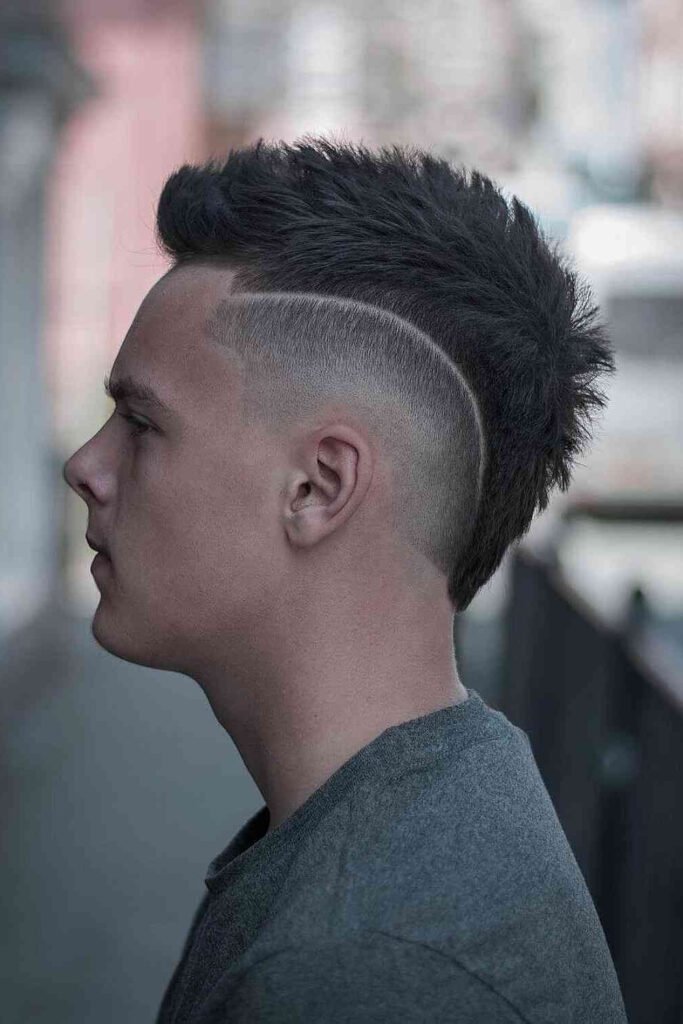 Get ready to stand out with this mohawk-inspired taper undercut for male. Use a #0 low taper on the sides, blending into a clean undercut with 5–6 inches left on top in a faux-hawk shape.