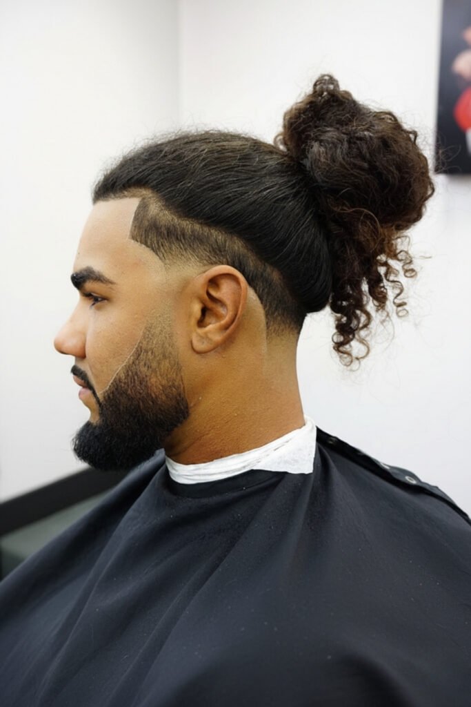 Best for round and oval faces with curly hair. Pair it with a stubble beard and a sharp line-up. Use curl sponge and cream for texture.