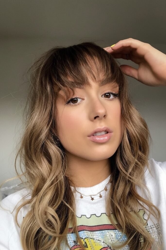 Eyebrow-grazing bangs add a bold, edgy element to any hairstyle. They frame the face, drawing attention to the eyes. Combine with soft waves or straight hair for a balanced look.