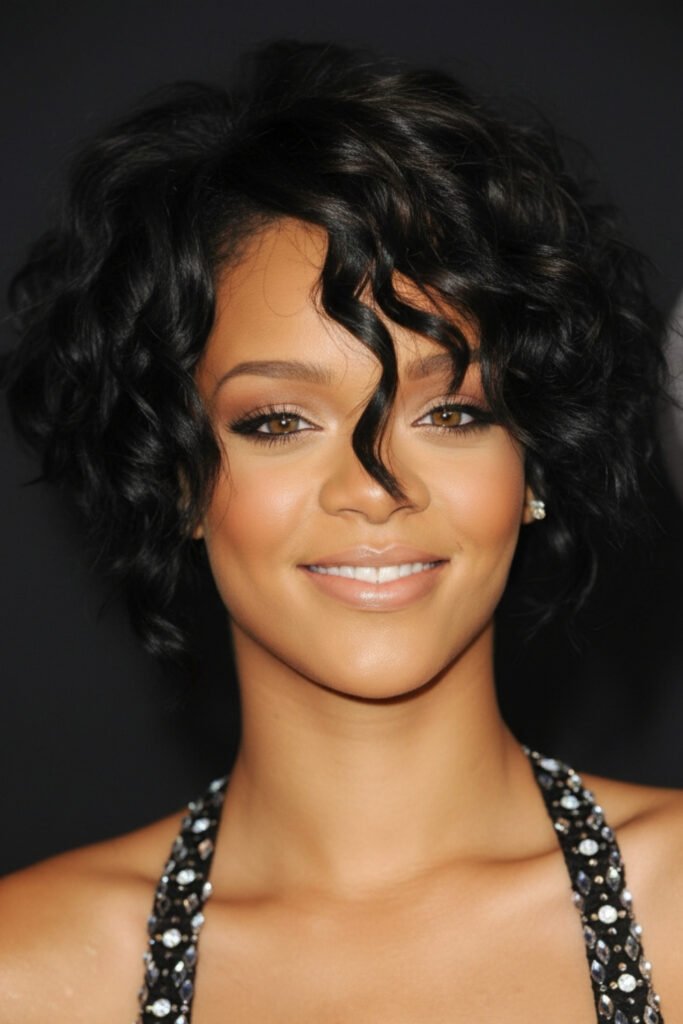 A side-swept curly pixie brings romance, softness, and modern flair, making it a stunning feminine short style. Natural short curls fall gently across the forehead, adding movement and charm.