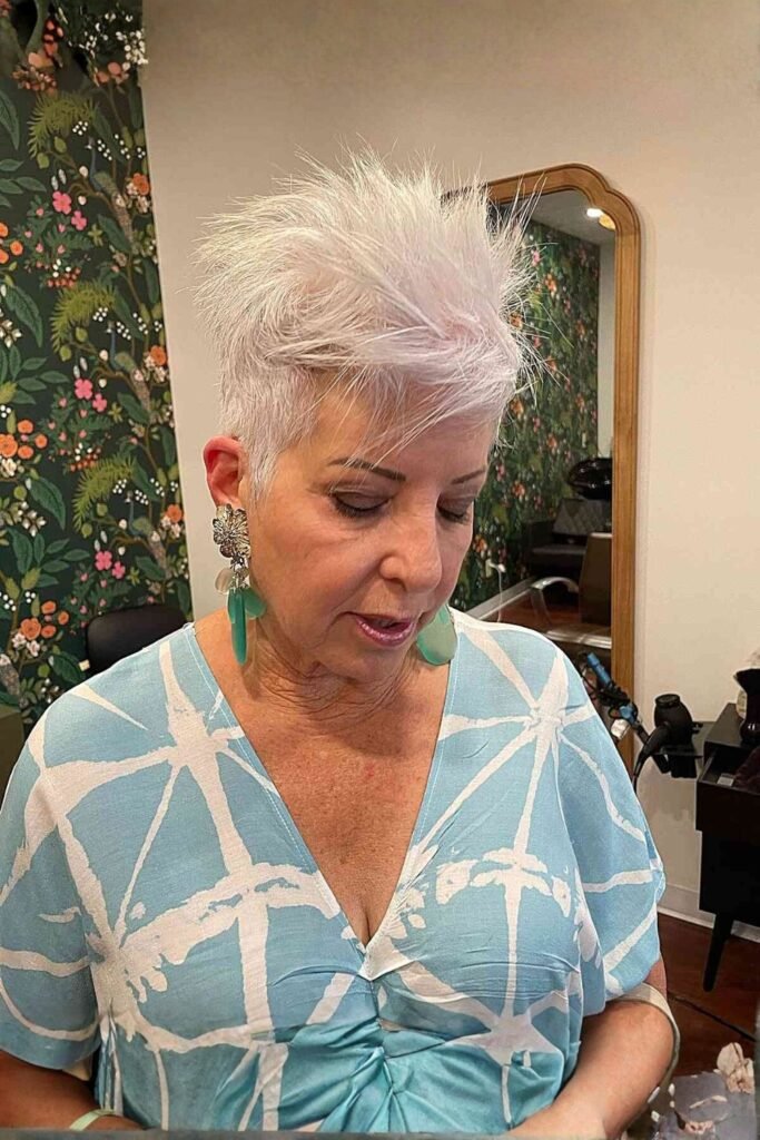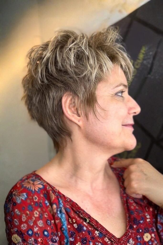 A soft spiky pixie with short layers makes you look younger over 60 because it adds crown volume, lifts facial features, and avoids flat, heavy shapes.