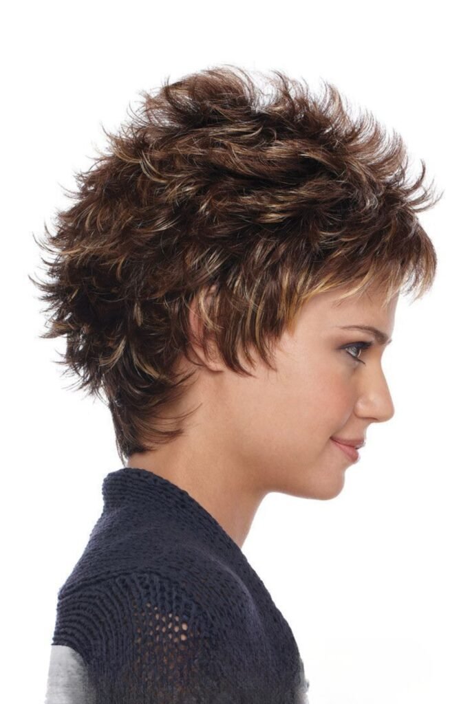 Captivate with the Curly Spiky Crop, an energetic short spiky haircut radiating confidence and modern feminine attitude through its curly rebellious chic hairstyle. Tight curls cropped into short spikes feature layered definition for bouncy, textured volume.