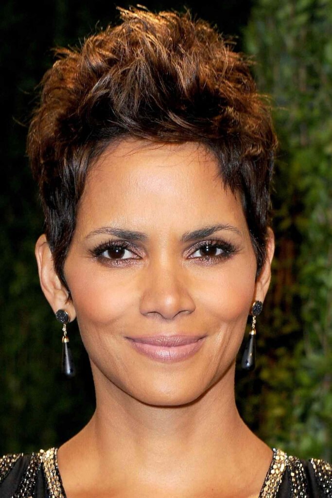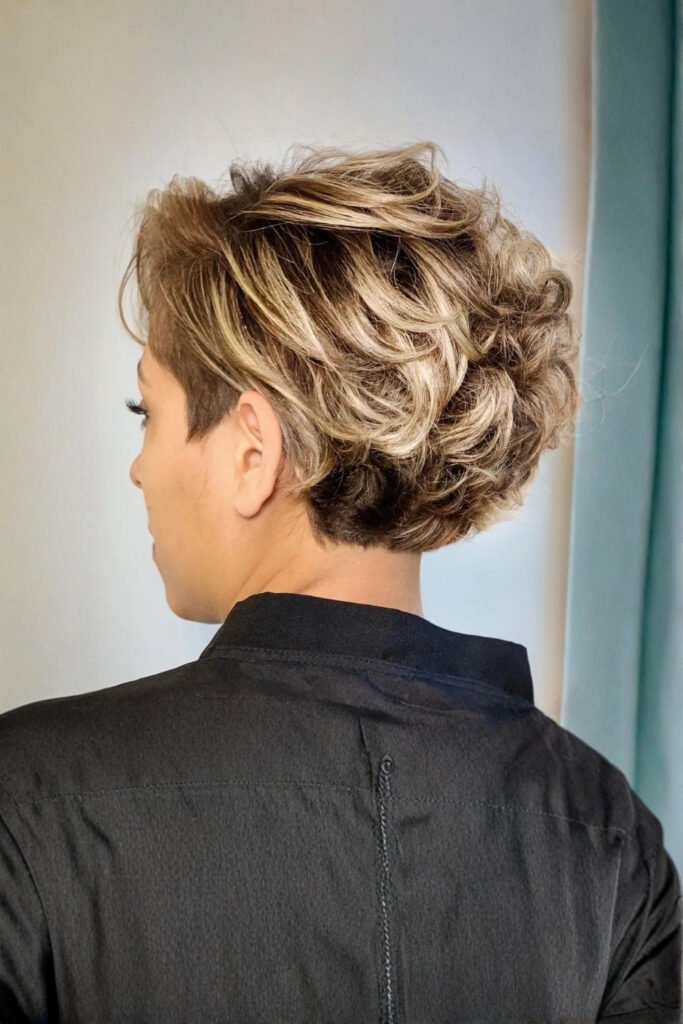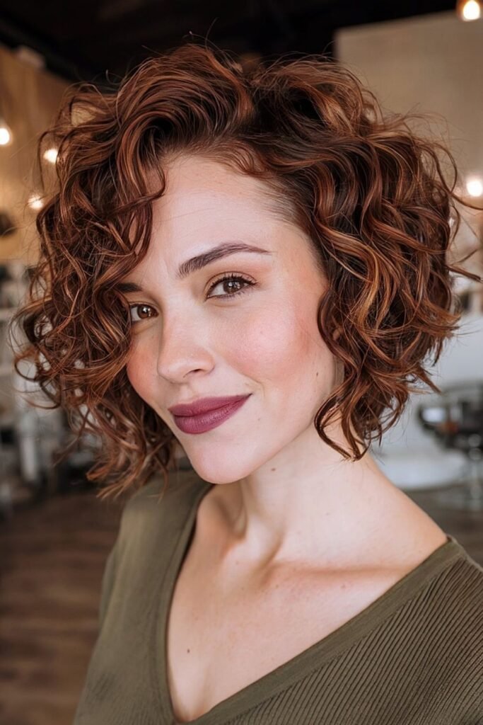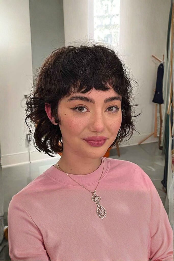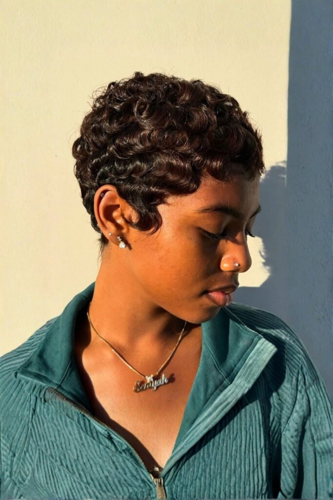 A curly pixie haircut brings charming volume and soft texture that looks warm and playful in winter. Natural curls create a feminine winter style that feels youthful, cozy, and expressive.
