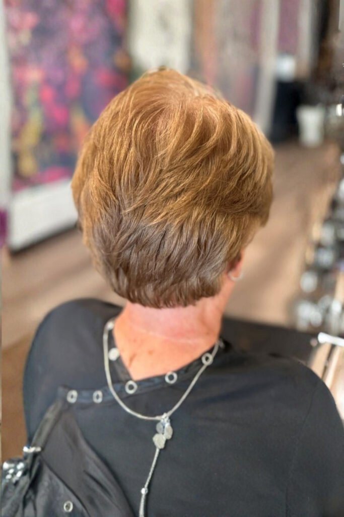A layered short cut with light teasing gives soft volume and a cozy hair look that feels gentle and feminine. The fluffy styling creates warmth and movement, making it ideal for winter outfits like chunky sweaters, long trench coats, and suede boots.