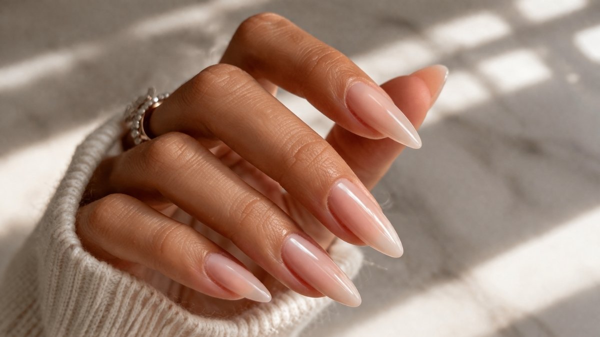 On warm or olive undertones, it looks creamy and natural without turning ashy. You can wear this minimalist manicure in professional environments, strict corporate dress codes, healthcare settings, and even weddings, since the glossy neutral finish looks refined, subtle, and appropriate.