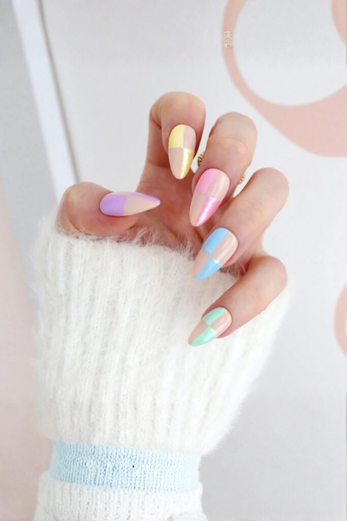 The contrast between the clean lines and soft colors makes this style stand out for Easter. A quick-drying top coat locks everything in place, maintaining the crisp checkered design.
