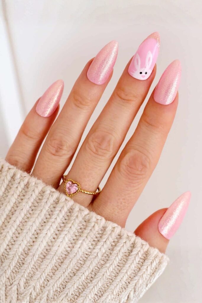 Cute bunny designs paired with soft chrome nails create a whimsical and fun Easter look. The pastel base feels fresh, while the bunny accents add a playful touch to your style.