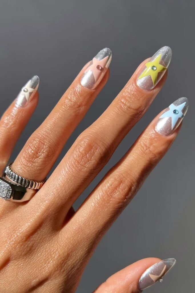 Easter is the perfect time to show off your nails, and chrome nails provide a sleek, shiny finish that adds a bold touch to your spring look. These mirror-like nails are ideal for elevating your style, whether you’re attending a family gathering or brunch.