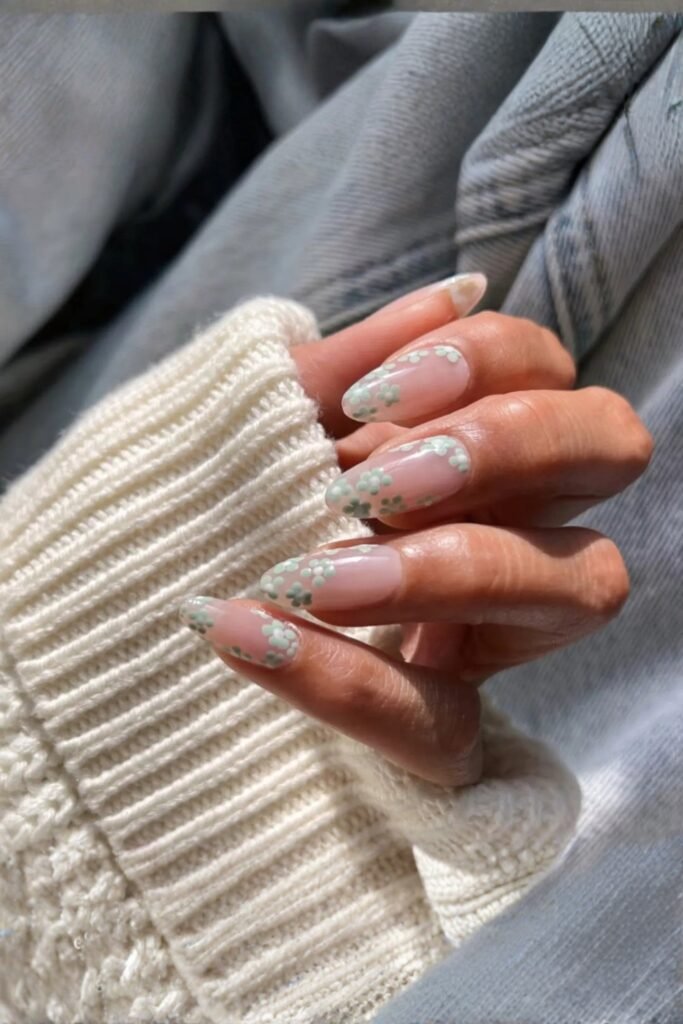 It’s a gentle, romantic look that doesn’t overpower your style. Use a fine brush to create the flowers, and finish with a clear top coat for a smooth, lasting finish that keeps the details sharp.