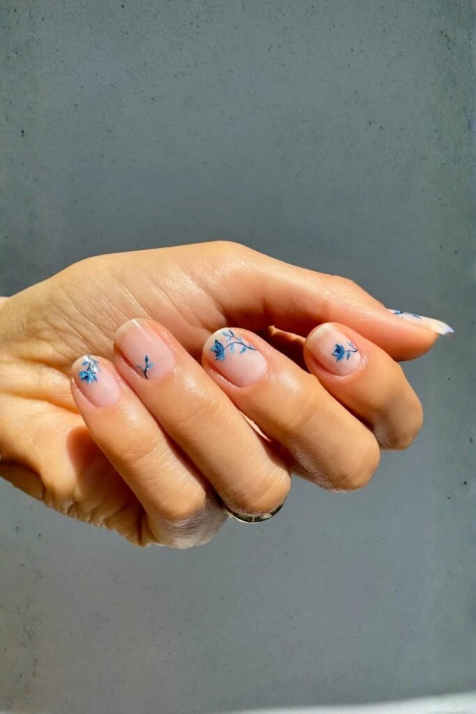 • 12. Blue Flower Nail Art