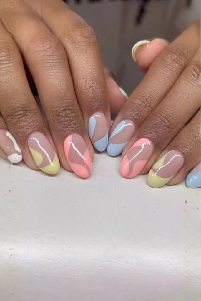16. Pastel Squiggle Color Block Nails