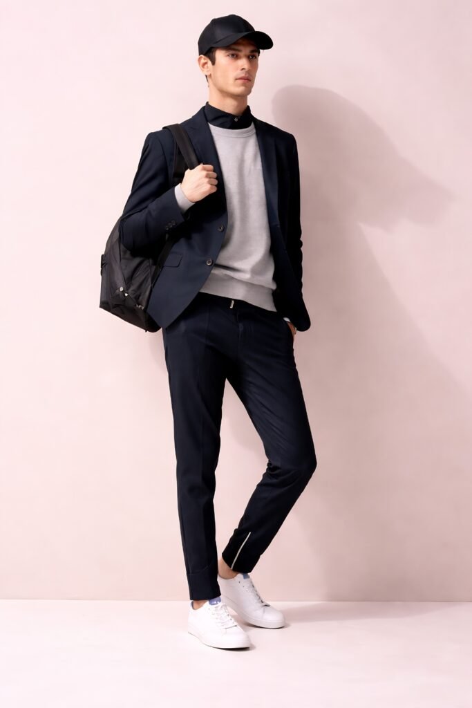 This style leans towards sophistication while keeping it simple. Opt for a well-fitted cap to elevate the look. Complete the outfit with tailored pants and a slim-fit sweater for an understated but impactful ensemble that exudes quiet confidence.