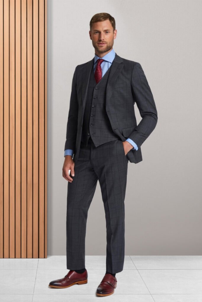 7) Charcoal Suit with Maroon Tie & Monk Straps