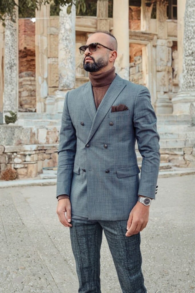 12) Double-Breasted Suit with Turtleneck and Brogues