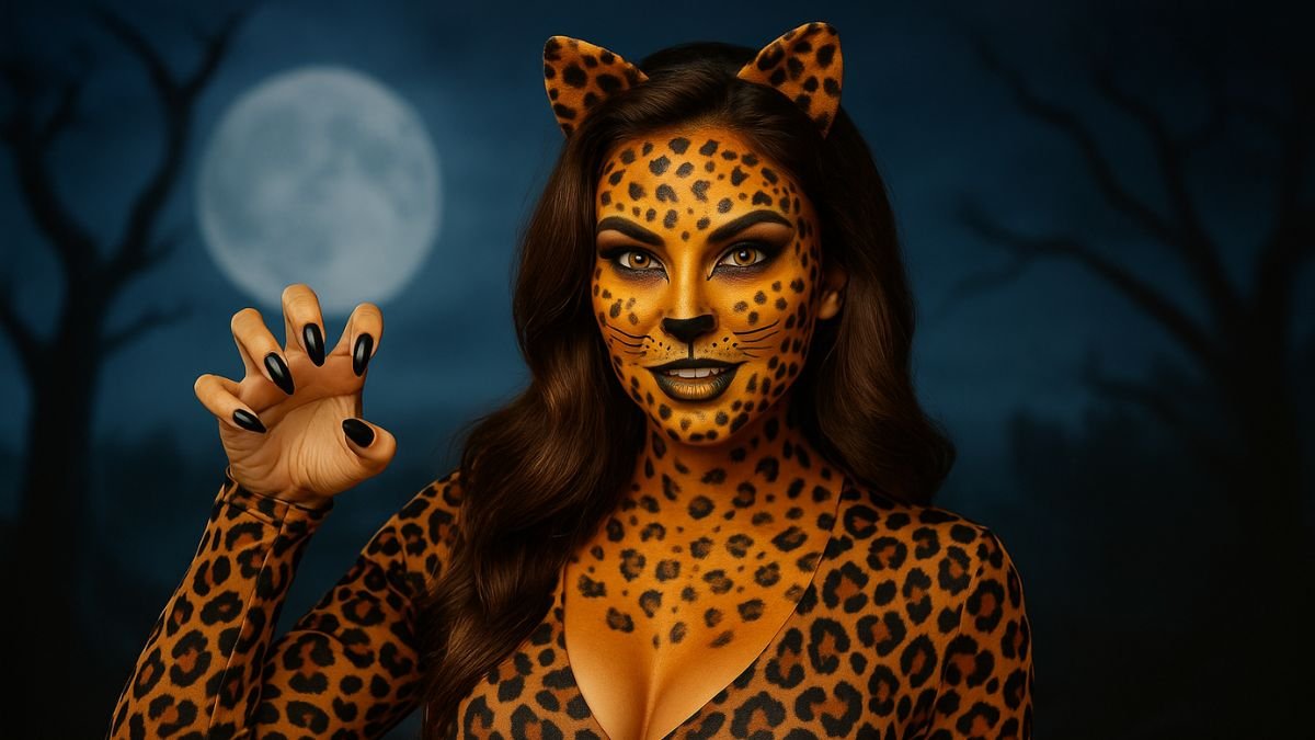 For leopard costumes, bold makeup works best. Use dramatic eyeliner for a cat-eye look, smoky eyeshadow, and a nude or red lipstick. Add spots or whiskers to complete the look.