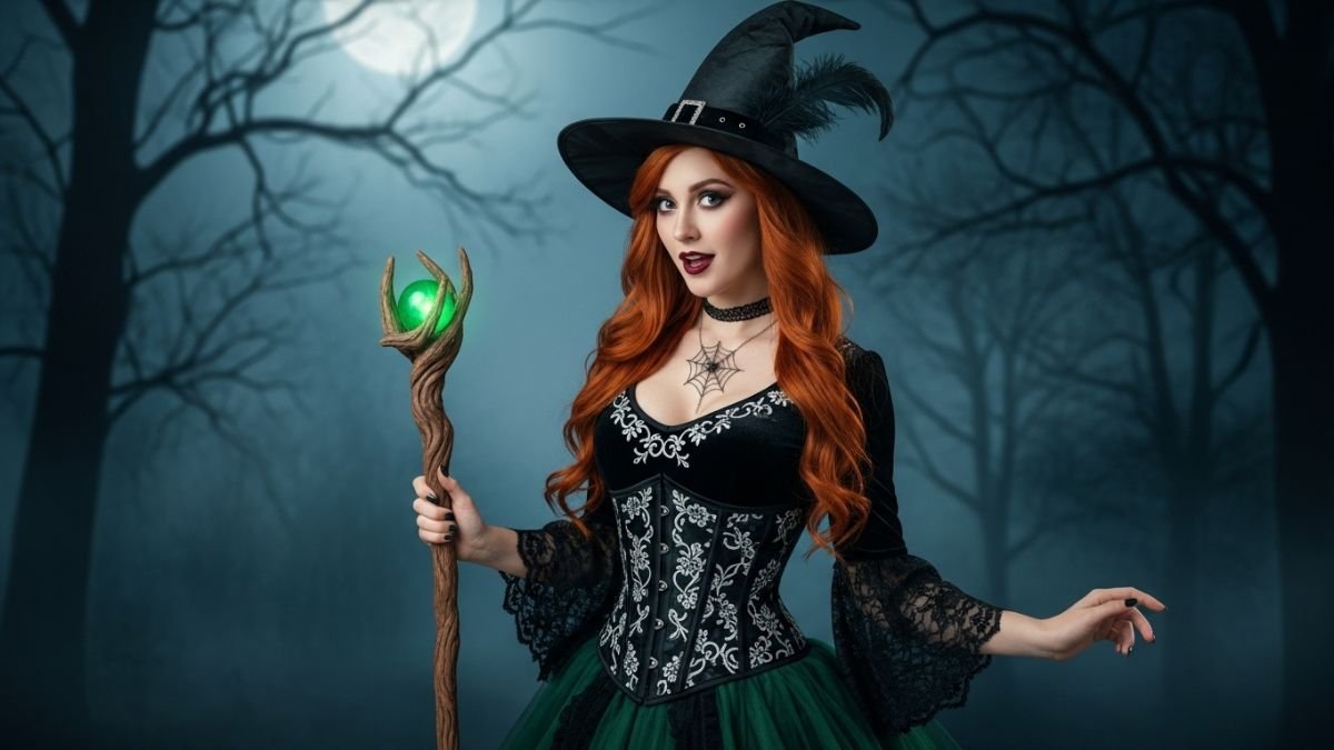 Add a velvet green cloak, lace gloves, and a spell book prop. Smudge dark liner under the lower lash line. This costume brings the witchy vibe with a fun theatrical twist.